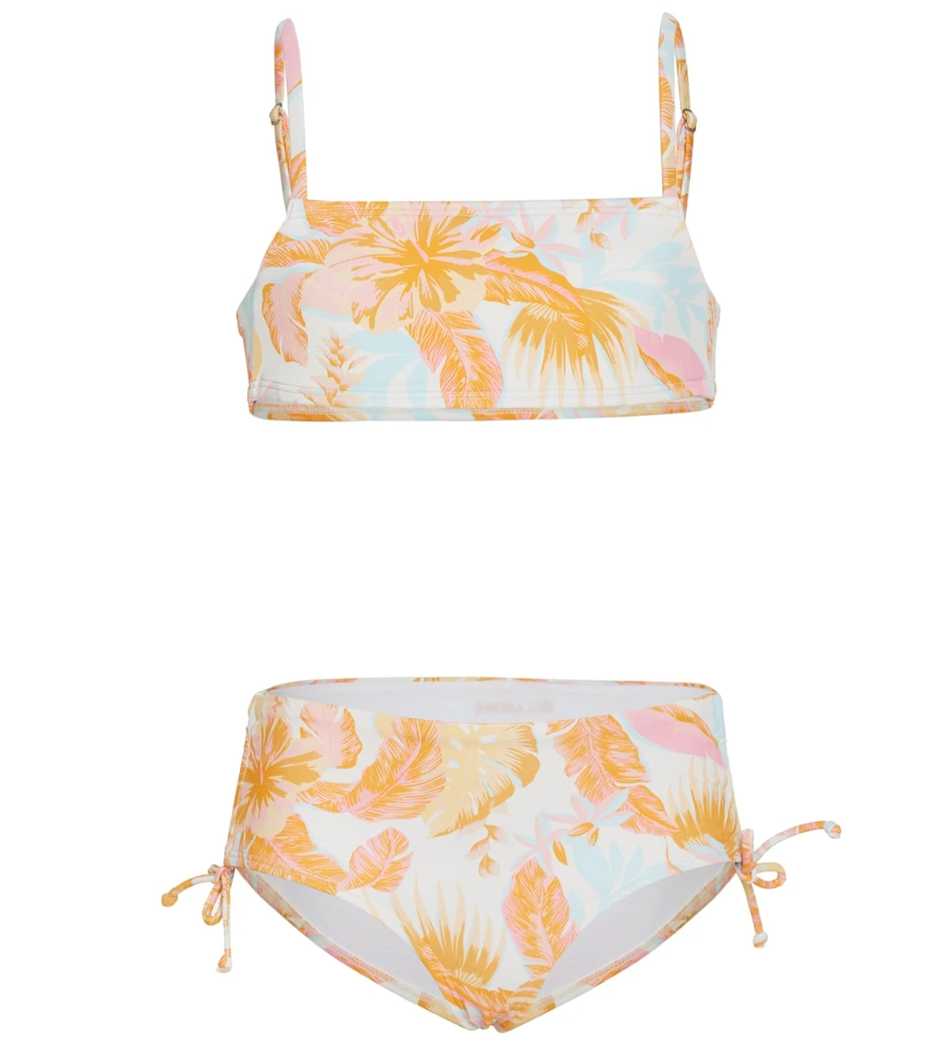 Float away to paradise in the Billabong Girls’ Tropical Punch Bandeau Two Piece Bikini Set (Little Kid, Big Kid).