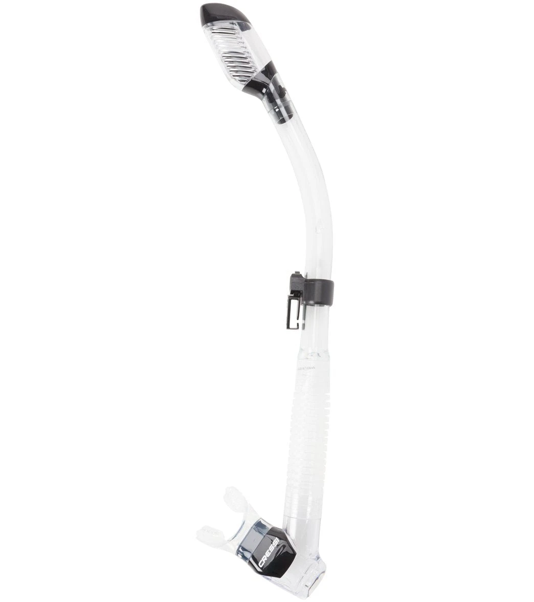 Take every breath with confidence with the Cressi Supernova Dry Snorkel. Featuring a dry-top design, the snorkel seals out water from breathing tube while the swimmer is submerged. The float-activated valve instantly seals off the breathing tube if it is submerged from swimming or overhead waves. The snorkel delivers an ideal airflow as the lower purge valve delivers instant clearing when needed.