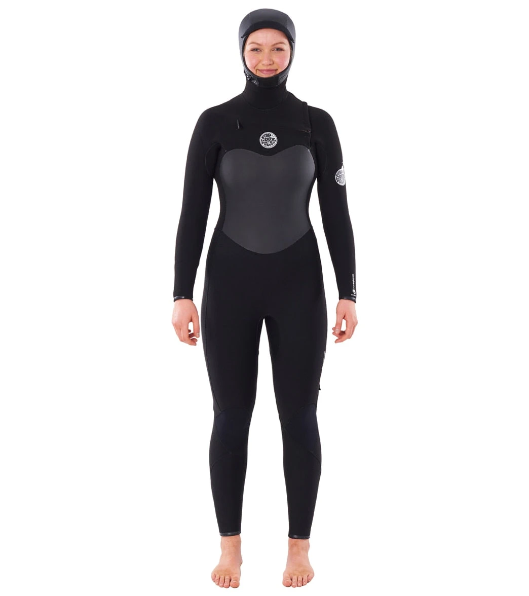Gear up for the coldest conditions in the Rip Curl Women’s 6/4 Flashbomb Long Sleeve Hooded Chest Zip Fullsuit Wetsuit.