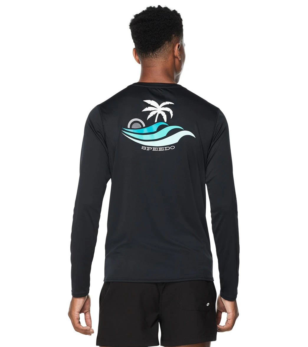 Ride the waves in the Speedo Active Men’s Graphic Long Sleeve Swim Shirt featuring sun protective fabric.