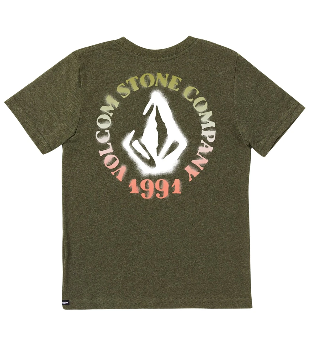 Be unique in the Volcom Boys’ Spray Circle Short Sleeve T-Shirt featuring a spray paint effect graphic.