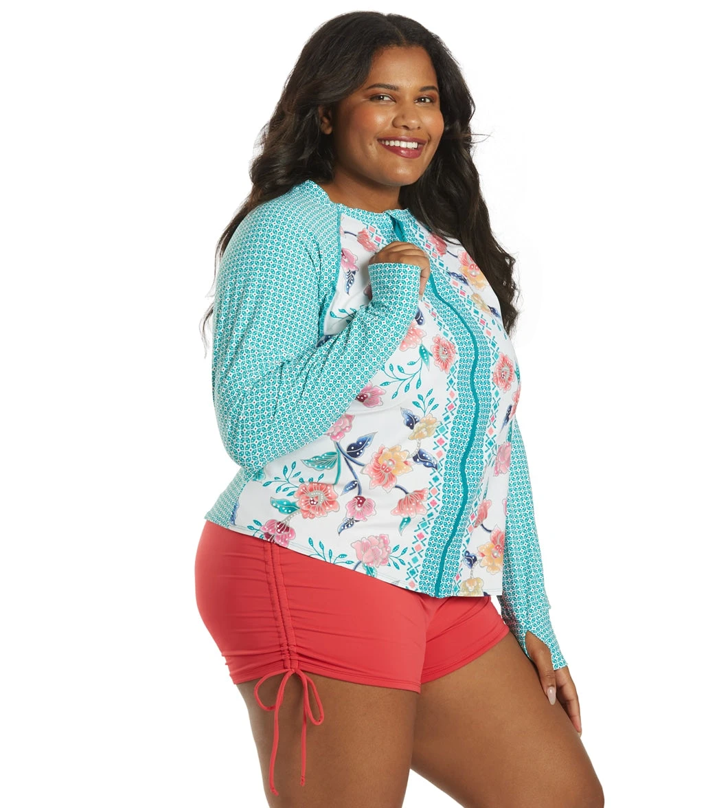 Paddle out in the Beach House Women’s Plus Size Floral Fantasy Scarlett Sun Guard Long Sleeve Top.
